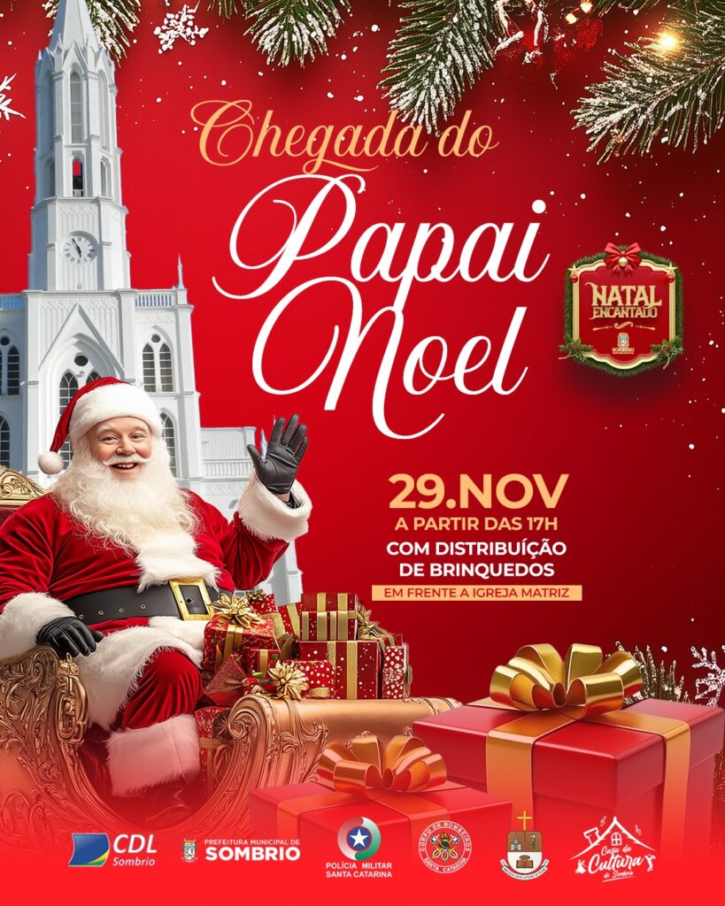 O espírito do Natal já tomou conta de Sombrio! A cidade recebe a chegada do Papai Noel nesta sexta-feira, 29 de novembro, dando início a uma programação mágica organizada pela Prefeitura Municipal.