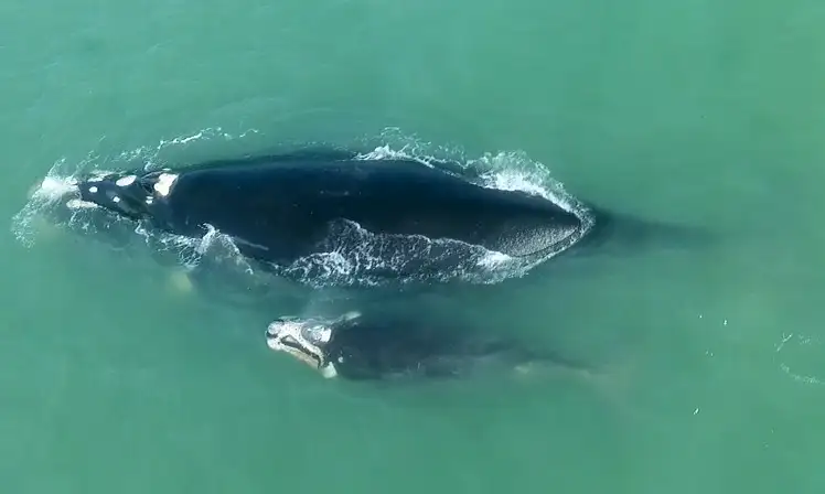 Equipe realiza monitoramento científico de baleias-francas com uso de drones e interação com a comunidade; primeira Festa da Baleia está prevista para agosto.