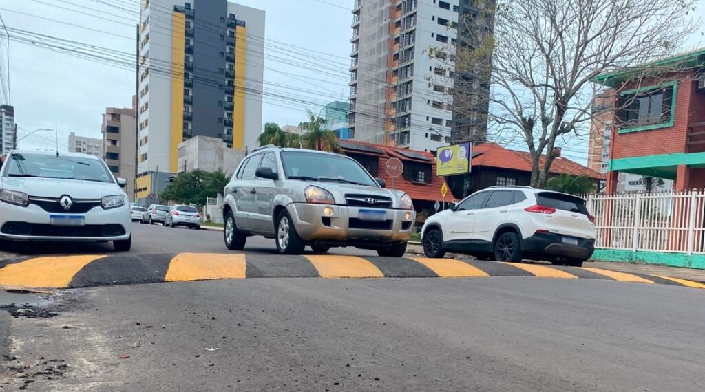 Na última sexta-feira (22), a Prefeitura de Torres realizou a pintura de sinalização no quebra-molas instalado na rua Manoel Fortunato de Souza, próximo à esquina com a Pedro Cincinato Borges, no Centro. O redutor de velocidade havia sido colocado há cerca de um mês sem pintura ou placas, gerando reclamações de motoristas que relatavam prejuízos por não perceberem o obstáculo a tempo.