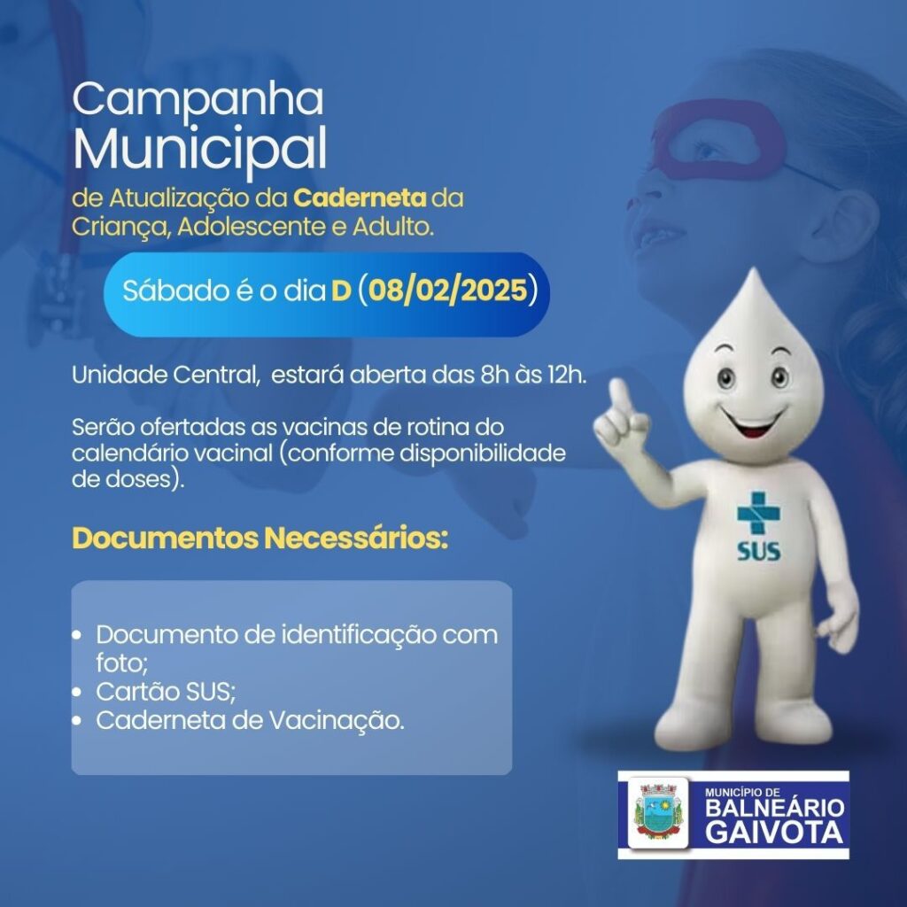 A secretária de Saúde de Balneário Gaivota, no Sul catarinense, por meio da Vigilância Epidemiológica, promove no próximo sábado (8) o “Dia D” da Campanha Municipal de Vacinação.
