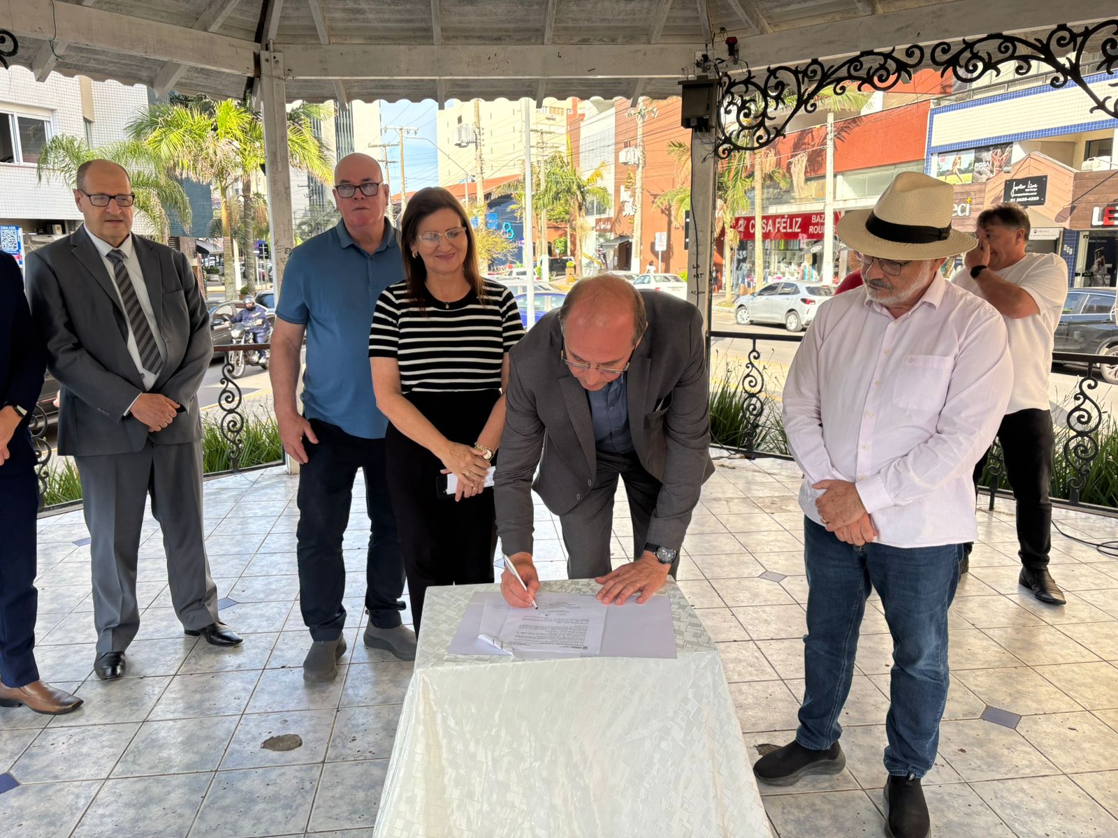 A Prefeitura de Torres, representada pelo prefeito Delci Dimer, deu mais um passo importante para fortalecer a segurança pública no município. Nesta sexta-feira, 14 de novembro, foi realizada a cerimônia de assinatura do contrato do Plano de Ação do Cercamento Eletrônico e Videomonitoramento entre o executivo municipal e a empresa DGT, projeto nominado de “Te VI”. O evento ocorreu na Praça XV de Novembro, reunindo autoridades municipais.