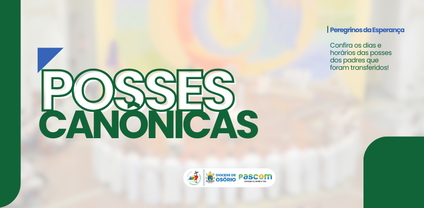 Em espírito de comunhão e zelo eclesial, a Diocese de Osório divulga o calendário das celebrações de posse canônica dos novos párocos que assumem comunidades paroquiais do Litoral Norte gaúcho. As celebrações presididas pelo bispo da Diocese de Osório, dom Jaime Pedro Kohl, foram definidas com atenção à realidade pastoral e ao envolvimento das comunidades, que acolhem com alegria seus novos pastores.