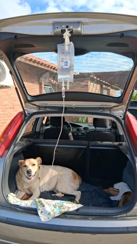 Ao tomarem conhecimento do cão desorientado na rodovia, saíram em busca do animal. Em um primeiro momento, acreditaram tê-lo encontrado, mas perceberam que se tratava de outro caso, igualmente dramático. Era uma fêmea em estado grave de saúde, posteriormente diagnosticada em clínica veterinária como vítima de envenenamento.