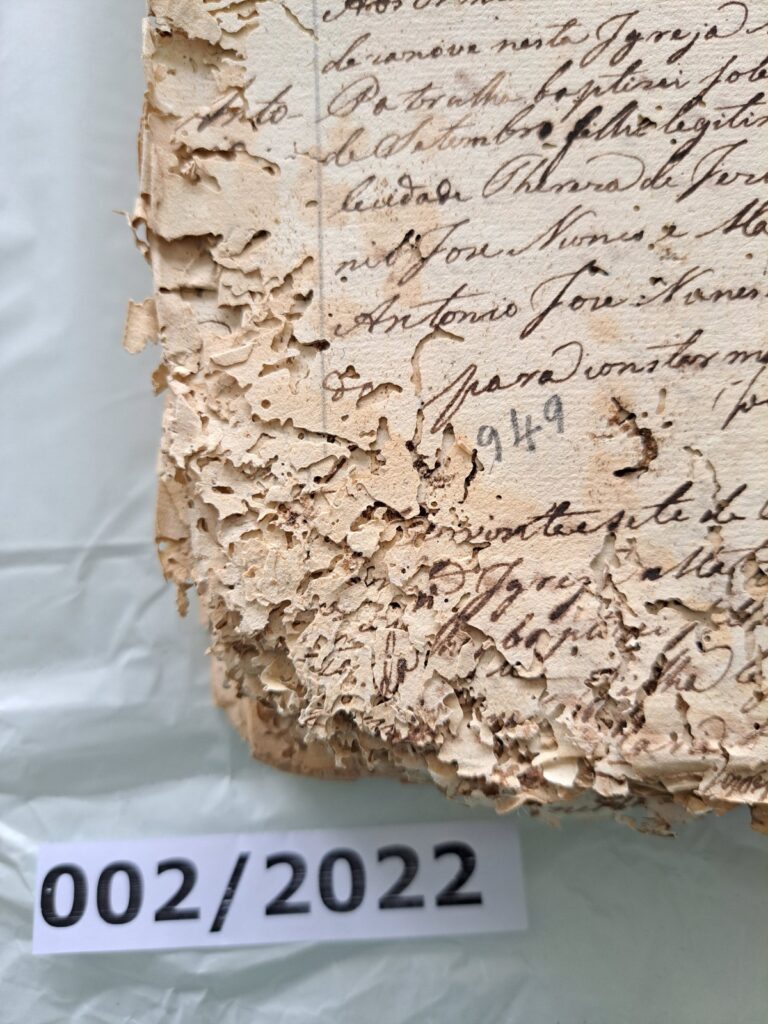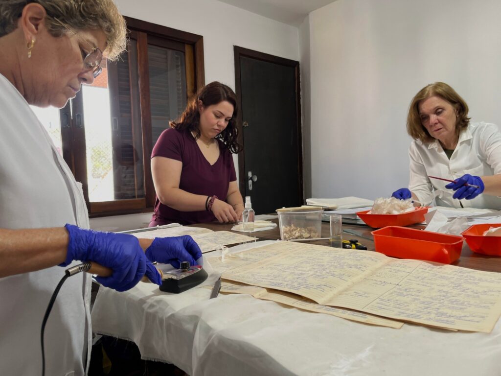 O projeto nasceu em 2022, quando um inventário técnico revelou o estado delicado dos documentos. Fungos, acidez do papel, ataques de insetos e encadernações comprometidas indicavam risco real de perda irreversível.