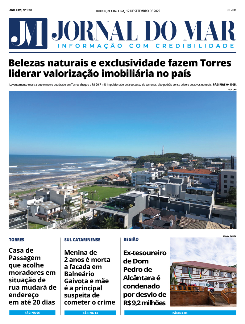 Confira a edição digital completa do Jornal do Mar desta semana, trazendo as principais notícias do Litoral Norte gaúcho, Sul catarinense e Serra gaúcha, acompanhadas por uma reportagem especial e conteúdo exclusivo de nossos colunistas:
