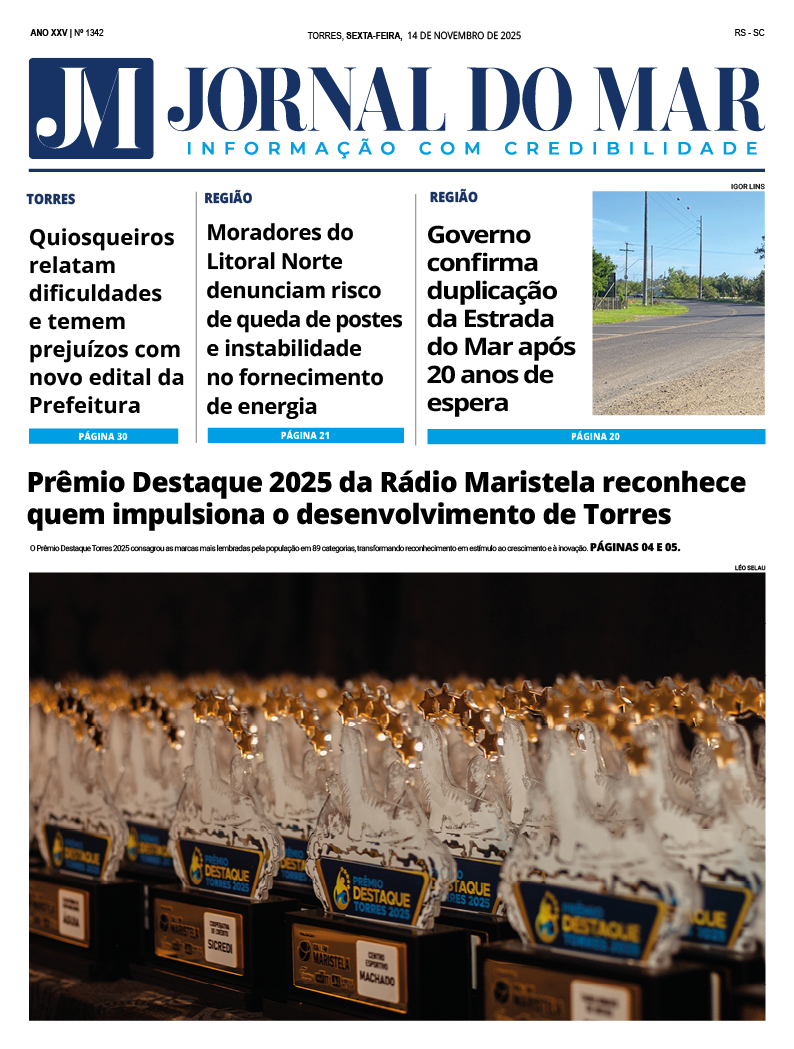 Confira a edição digital completa do Jornal do Mar desta semana, trazendo as principais notícias do Litoral Norte gaúcho, Sul catarinense e Serra gaúcha, acompanhadas por uma reportagem especial e conteúdo exclusivo de nossos colunistas: