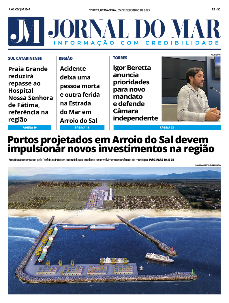 Confira a edição digital completa do Jornal do Mar desta semana, trazendo as principais notícias do Litoral Norte gaúcho, Sul catarinense e Serra gaúcha, acompanhadas por uma reportagem especial e conteúdo exclusivo de nossos colunistas: