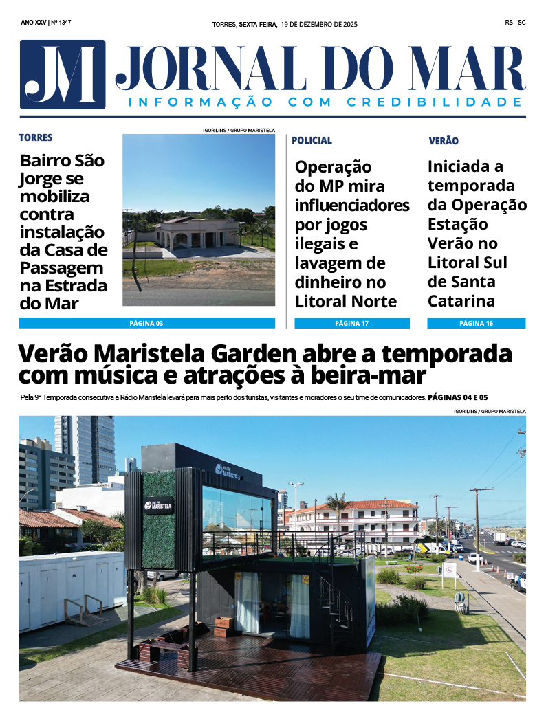 Confira a edição digital completa do Jornal do Mar desta semana, trazendo as principais notícias do Litoral Norte gaúcho, Sul catarinense e Serra gaúcha, acompanhadas por uma reportagem especial e conteúdo exclusivo de nossos colunistas: