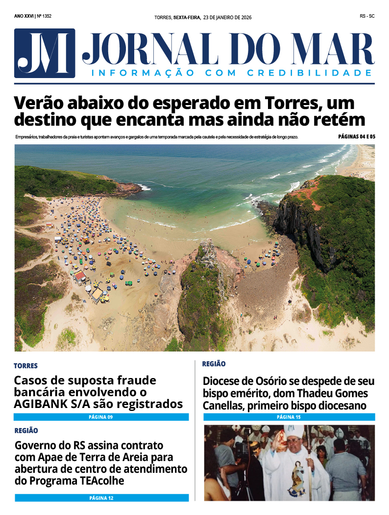 Confira a edição digital completa do Jornal do Mar desta semana, trazendo as principais notícias do Litoral Norte gaúcho, Sul catarinense e Serra gaúcha, acompanhadas por uma reportagem especial e conteúdo exclusivo de nossos colunistas: