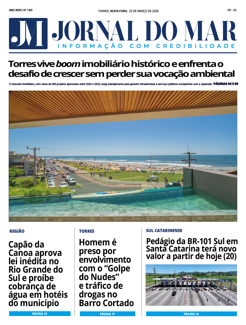 Confira a edição digital completa do Jornal do Mar desta semana, trazendo as principais notícias do Litoral Norte gaúcho, Sul catarinense e Serra gaúcha, acompanhadas por uma reportagem especial e conteúdo exclusivo de nossos colunistas: