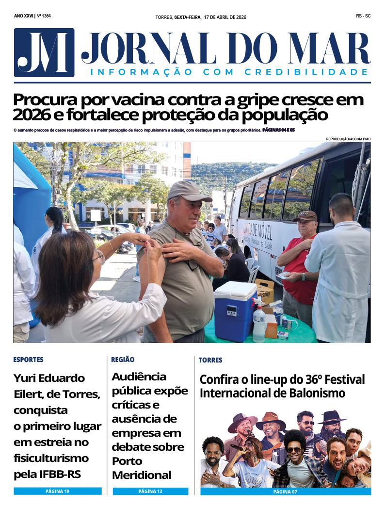 Confira a edição digital completa do Jornal do Mar desta semana, trazendo as principais notícias do Litoral Norte gaúcho, Sul catarinense e Serra gaúcha, acompanhadas por uma reportagem especial e conteúdo exclusivo de nossos colunistas: