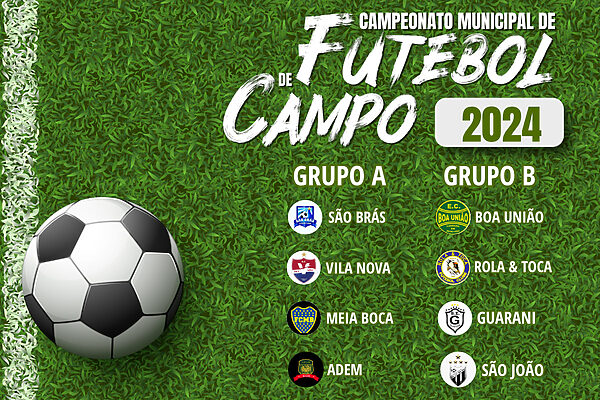 No próximo domingo (30), o Campeonato Municipal de Futebol de Campo 2024 prosseguirá com três jogos simultâneos. A partida dos aspirantes está agendada para as 13h15min, seguida pelos titulares às 15h15min. Os jogos serão realizados em três campos diferentes: no Campo do São Jorge, teremos Adem x Meia Boca; no Boa União, Boa União x Rola e Toca; e no Campo do Jacaré, o confronto será entre Guarani x São João. A partir de 21 de julho, terão início as semifinais, com previsão de encerramento do campeonato em 11 de agosto.