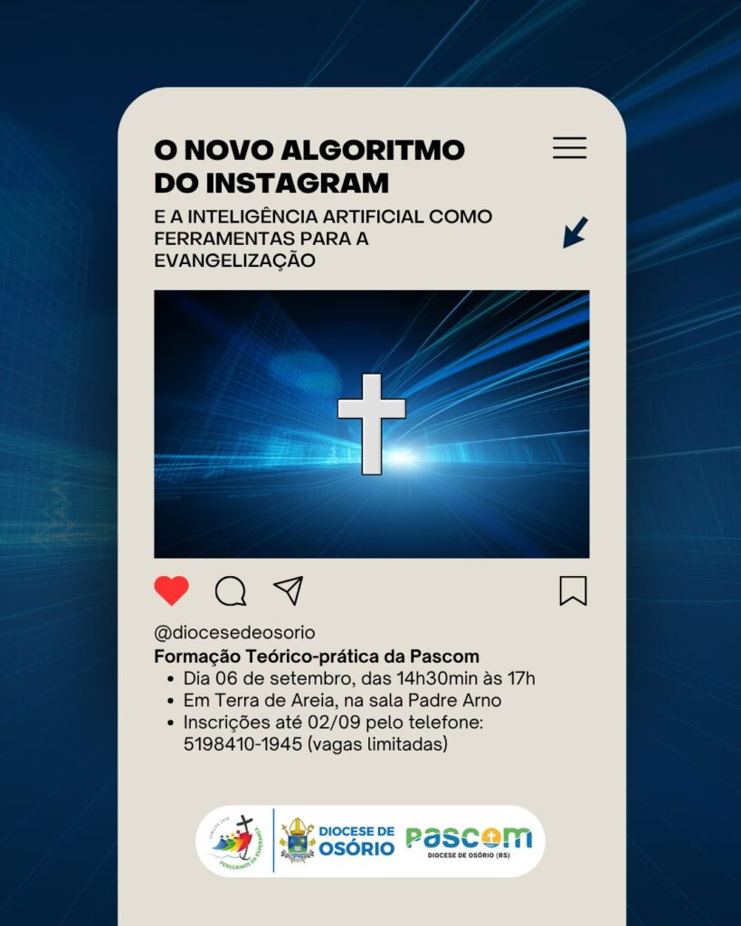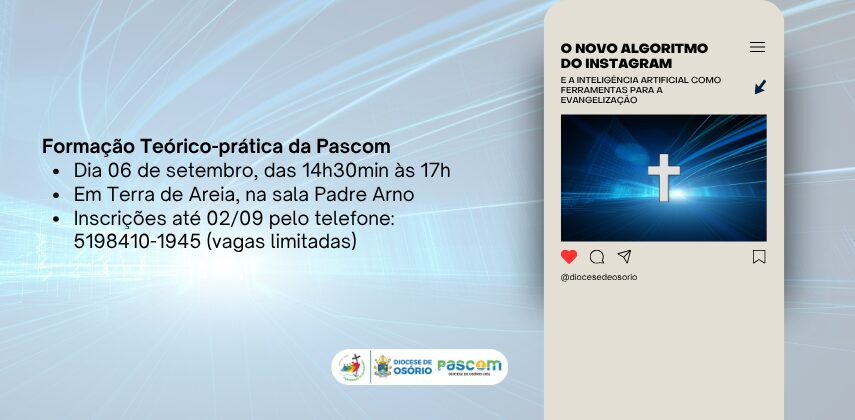 A iniciativa faz parte do itinerário de formação continuada promovido pela Pascom da Diocese de Osório, com o objetivo de qualificar os agentes para uma atuação mais eficaz, criativa e coerente com a missão da Igreja no ambiente digital. “Compreender o funcionamento das redes sociais e as novas ferramentas que surgem a cada dia é essencial para continuarmos sendo uma Igreja em saída, que comunica com beleza, verdade e proximidade”, afirma a Coordenação Diocesana da Pascom.