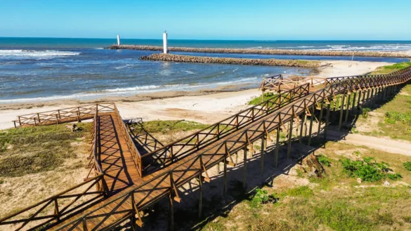 A Prefeitura de Passo de Torres está finalizando a construção da passarela na Praia dos Molhes, um novo espaço de lazer e contemplação com cerca de 300 metros de extensão. O local foi projetado para garantir acessibilidade, bem-estar e uma vista privilegiada do encontro entre o Rio Mampituba e o mar.