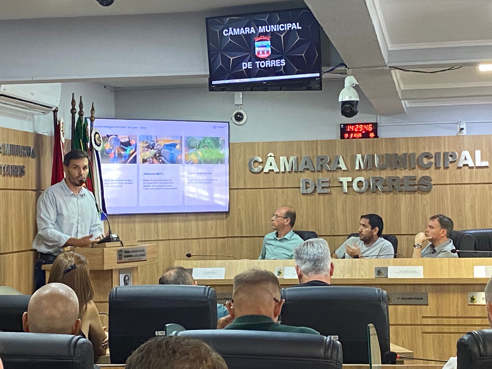 Uma reunião de alinhamento realizada na tarde desta sexta-feira na Câmara Municipal de Torres reuniu autoridades, representantes da Corsan e lideranças locais para discutir a prestação de serviços de água e esgotamento sanitário no município de Torres. O encontro foi motivado por reclamações recorrentes da comunidade, como extravasamentos de esgoto, falta de água e problemas estruturais em vias públicas após intervenções da companhia.