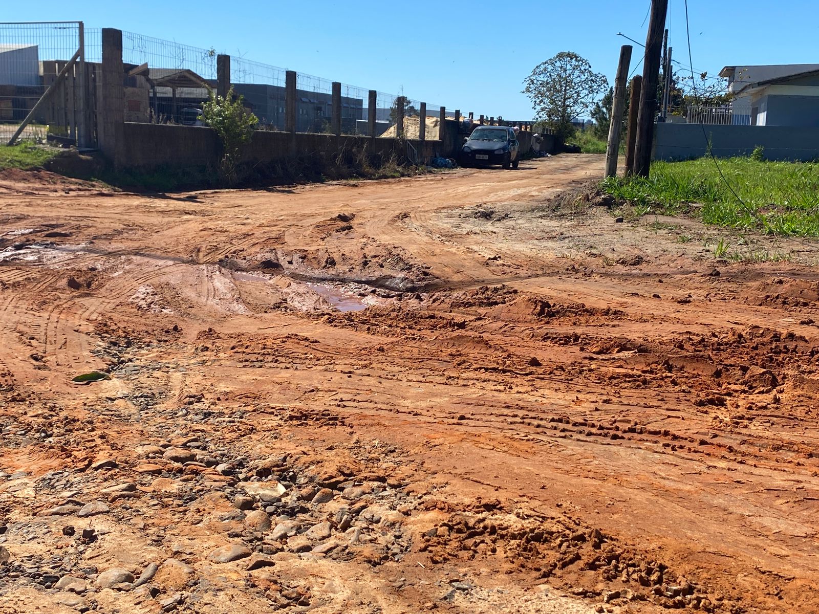 A gravação, publicada na terça-feira (9), viralizou como um pedido de socorro da comunidade às autoridades. Na última quarta-feira (10), a reportagem da Unidade Móvel da Rádio Maristela esteve no local e constatou a dificuldade dos moradores. Apesar do tempo firme de hoje, o barro vermelho acumulado nas margens da via mostrava o problema enfrentado em dias de chuva.