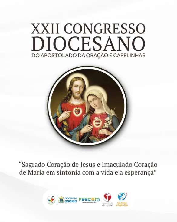 A Diocese de Osório, por meio da Coordenação Diocesana do Apostolado da Oração e Capelinhas, promove no dia 27 de setembro, sábado, o XXII Congresso Diocesano do Apostolado da Oração e Capelinhas.